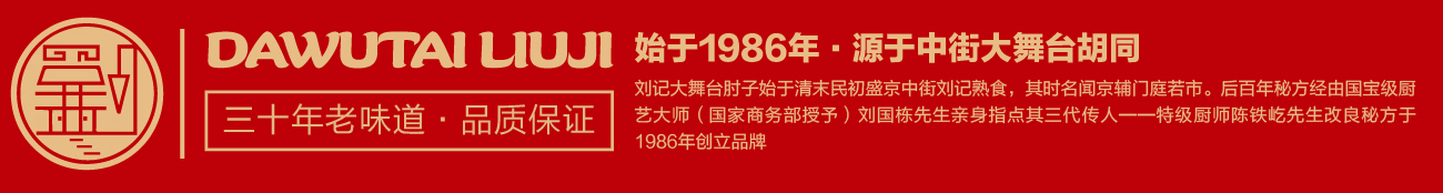盛京,昔乃大清王朝發(fā)祥之地。劉記大舞臺肘子始于清末民初盛京中街劉記熟食,其時名聞京輔門庭若市。后百年秘方經(jīng)由國寶級廚藝大師(國家商務部授予)劉國棟先生親身指點其三代傳人——中國烹飪大師劉家驥之徒中國烹飪大師陳鐵屹先生改良秘方,于1986年創(chuàng)立品牌。劉記大舞臺經(jīng)營的產(chǎn)品涵蓋招牌熏肘,豬蹄,燒雞等系列,產(chǎn)品色澤潤嫩、酥美可口、吮指尤香、譽滿沈城,遂成古今絕味,其獨特的風味深受沈城百姓喜愛。經(jīng)過三十余年的沉淀發(fā)展,劉記大舞臺品牌也成為了沈陽地標美食文化名片之一。